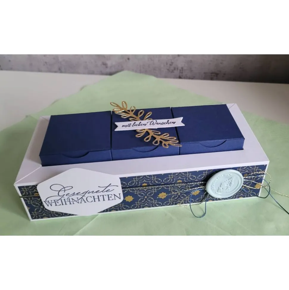 3D Rahmen mit 3 einzeln entnehmbaren Würfelboxen. Jede Box kann einzeln individuell befüllt werden. Entweder als Mitbringsel in der Adventszeit oder für ein Geldgeschenk zu Weihnachten.