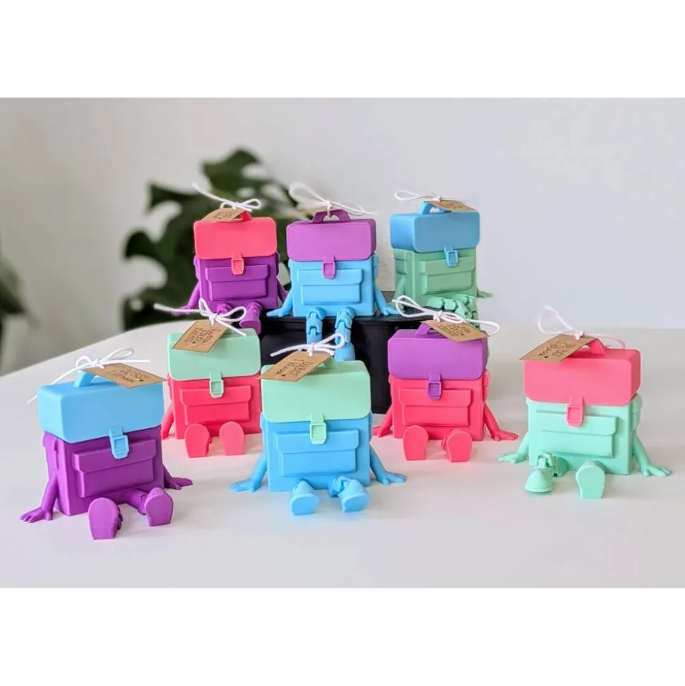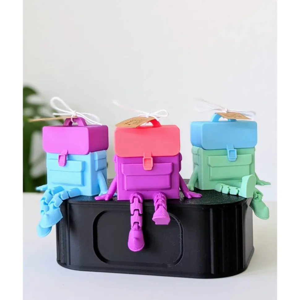 Gefertigt wird der Schulranzen im 3D-Druck aus PLA (Polylactid), einem biologisch basierten Kunststoff auf Maisstärkebasis. PLA ist eine beliebte Wahl für Dekorationsobjekte, da es stabil und umweltfreundlicher als viele andere Kunststoffe ist.