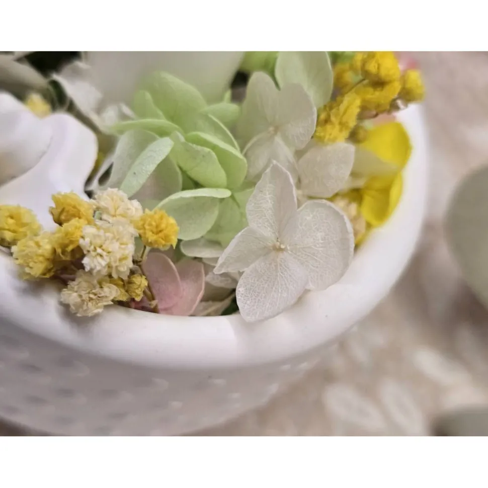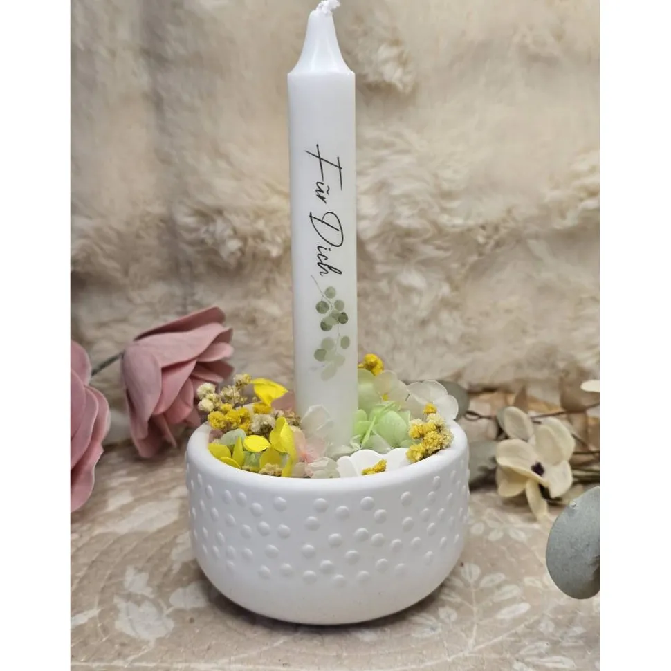 Einzigartige Geschenkidee: Die Kombination aus schlichter Raysin-Schale, natürlichen Trockenblumen und persönlichem Kerzengruß macht dieses Set zur idealen Aufmerksamkeit für besondere Menschen – als Geschenk oder Mitbringsel.