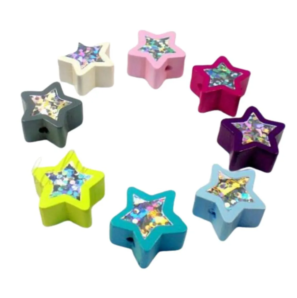 Die 20 speichelfesten, 10 mm Holzperlen sind in Fünfergruppen angeordnet.
