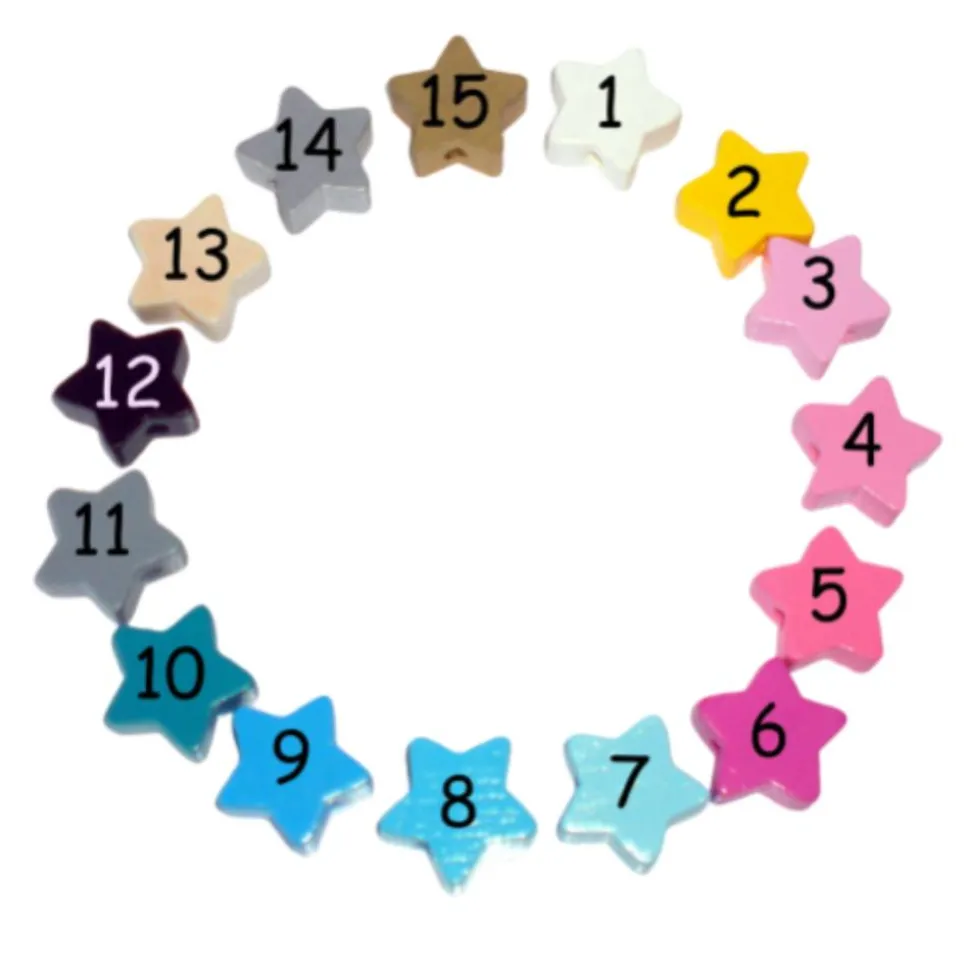 Die 20 speichelfesten, 10 mm Holzperlen sind in Fünfergruppen angeordnet.