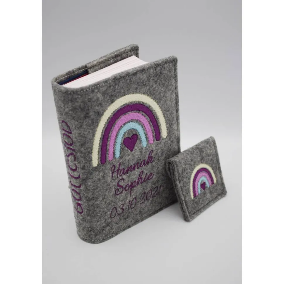 Regenbogen Set Gotteslobhülle + Rosenkranztasche Gebetbuch Hülle Geschenk Kommunion Firmung Geschenkidee personalisiert