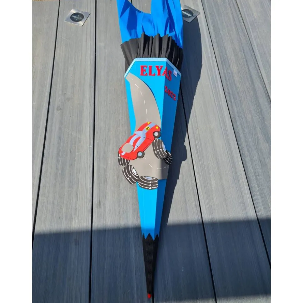 Eine Schultüte für schnelle Kids. Ein Rennauto in Glitzer oder ohne. Wie das Schulkind es möchte.