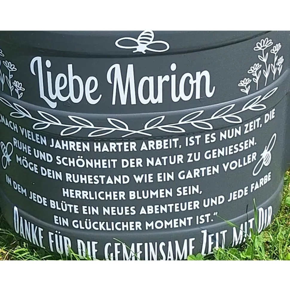 „Nach vielen Jahren harter Arbeit, ist es nun Zeit, die Ruhe und Schönheit der Natur zu genießen. Möge dein Ruhestand wie ein Garten voller herrlicher Blumen sein,