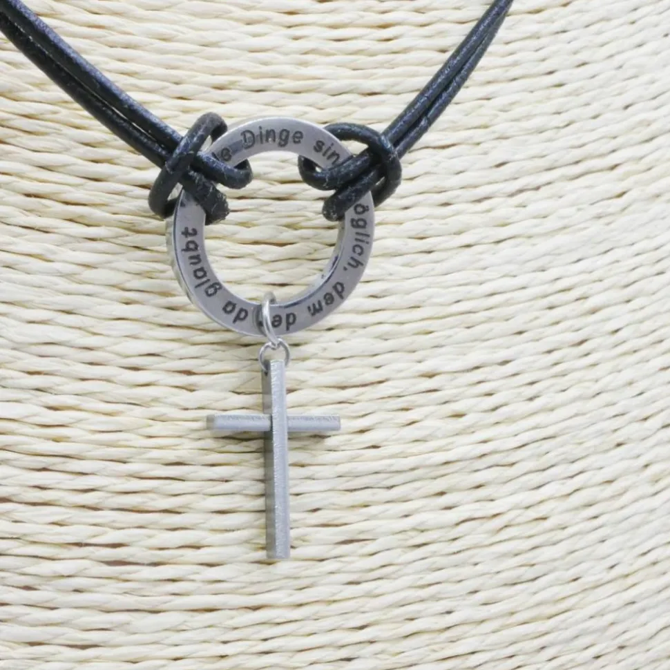 Gerade Jungs wollen modernen und zeitgemäßen Schmuck tragen, mit einem Lederband, das nah am Hals getragen werden kann.