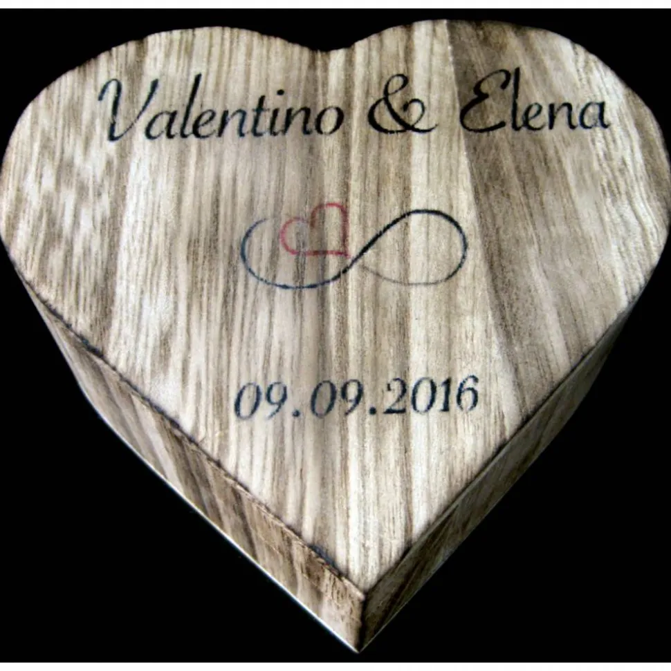 Die Vornamen und das Hochzeitsdatum werden nach Wünsch -wie auf den Bilder- stilvoll auf dem Holzbox angebracht.