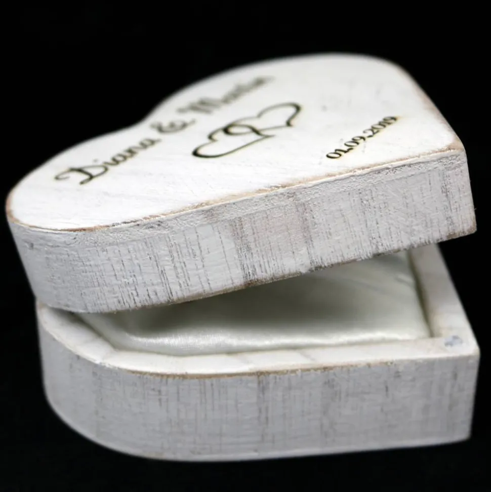 1 x Ringkissen im weißen Holzherz (personalisiert)