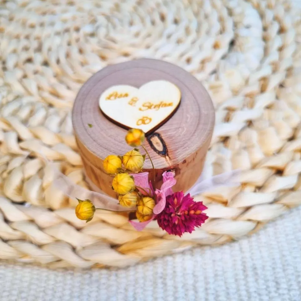 1x Ringkästchen aus Holz inkl. Trockenblumen und Band