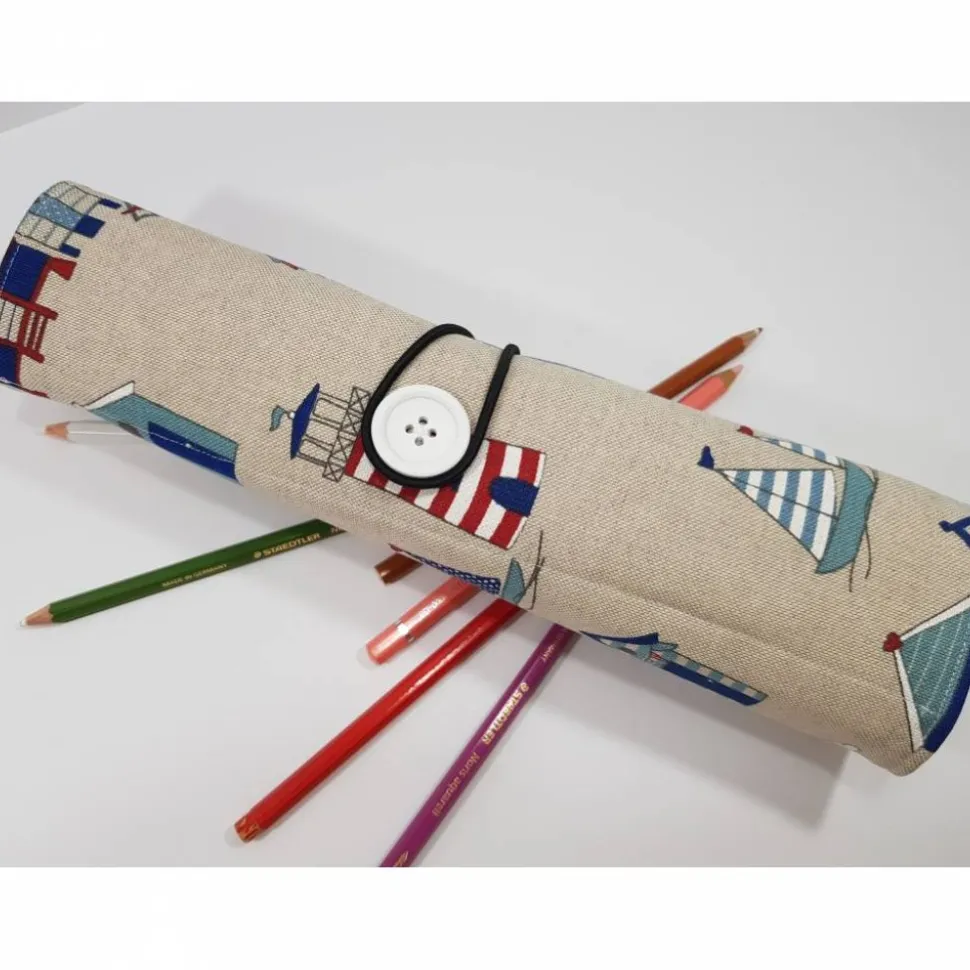 Verschlossen wird die Stifterolle mit Rundgummi um einen Knopf.