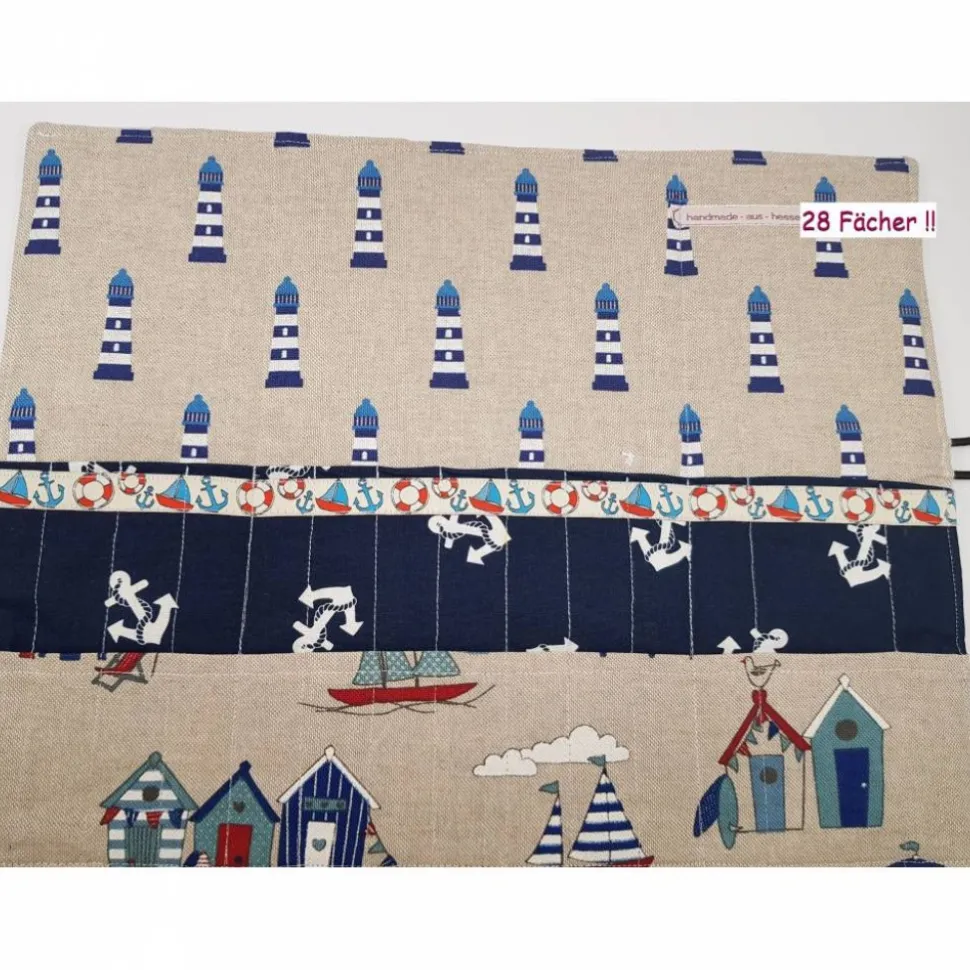 Da Stifte sich bekanntlich schneller verkürzen als man denkt, sind die Fächer des Rollmäppchens in einer Größe genäht, daß ein kürzerer Stift nicht gleich verschwindet sondern noch gut greifbar bleibt.