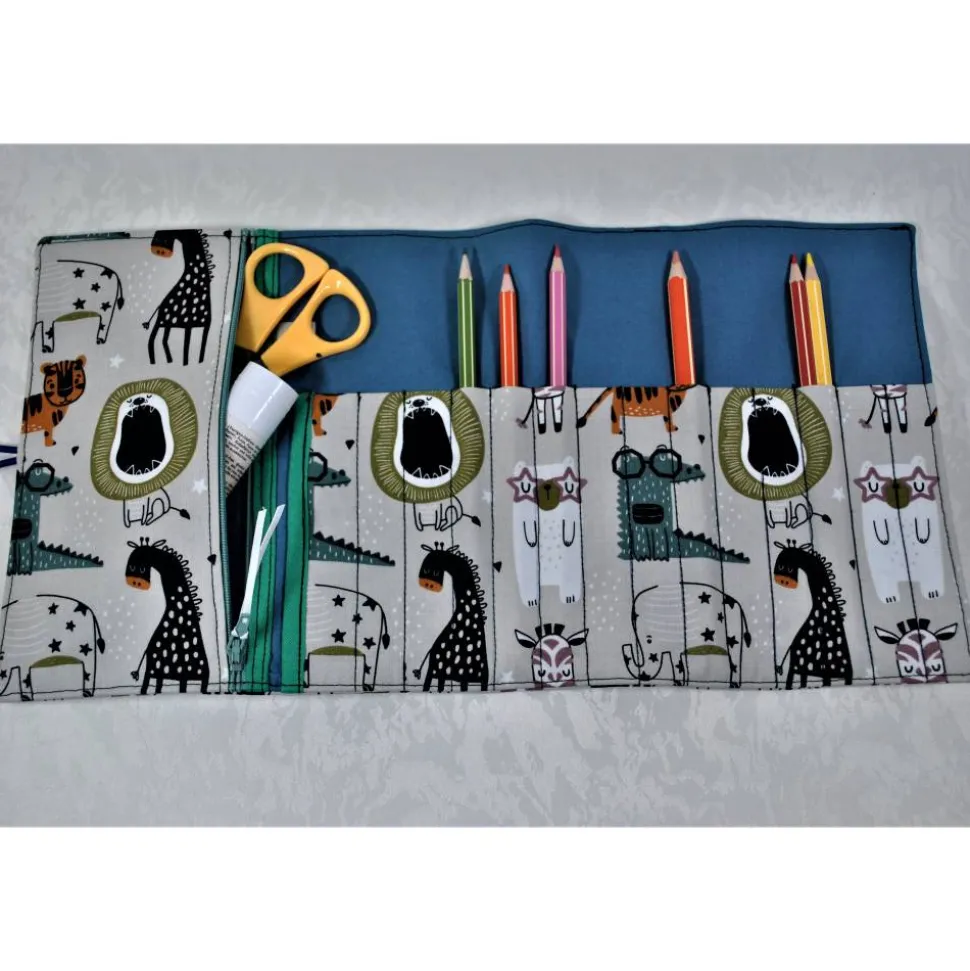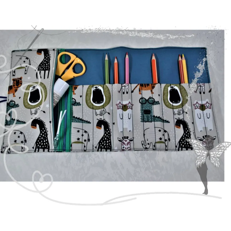 Das Rollmäppchen bietet Platz für Stifte, Schere, Kleber und mehr. Ausgelegt sind die Stifte gut sichtbar und für kleine Kinderhände leicht greifbar. Kein lästiges Suchen mehr – alles hat seinen festen Platz. Die separate Reißverschlusstasche eignet sich ideal für Schere, Kleber und andere Utensilien.
