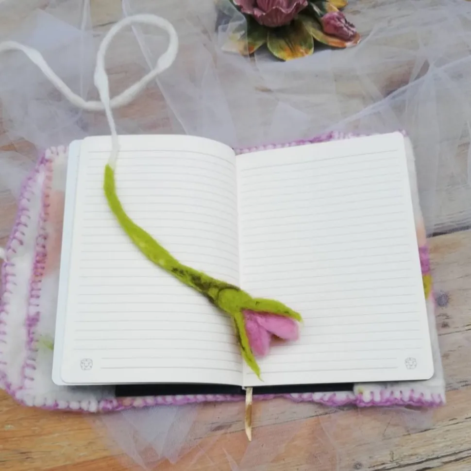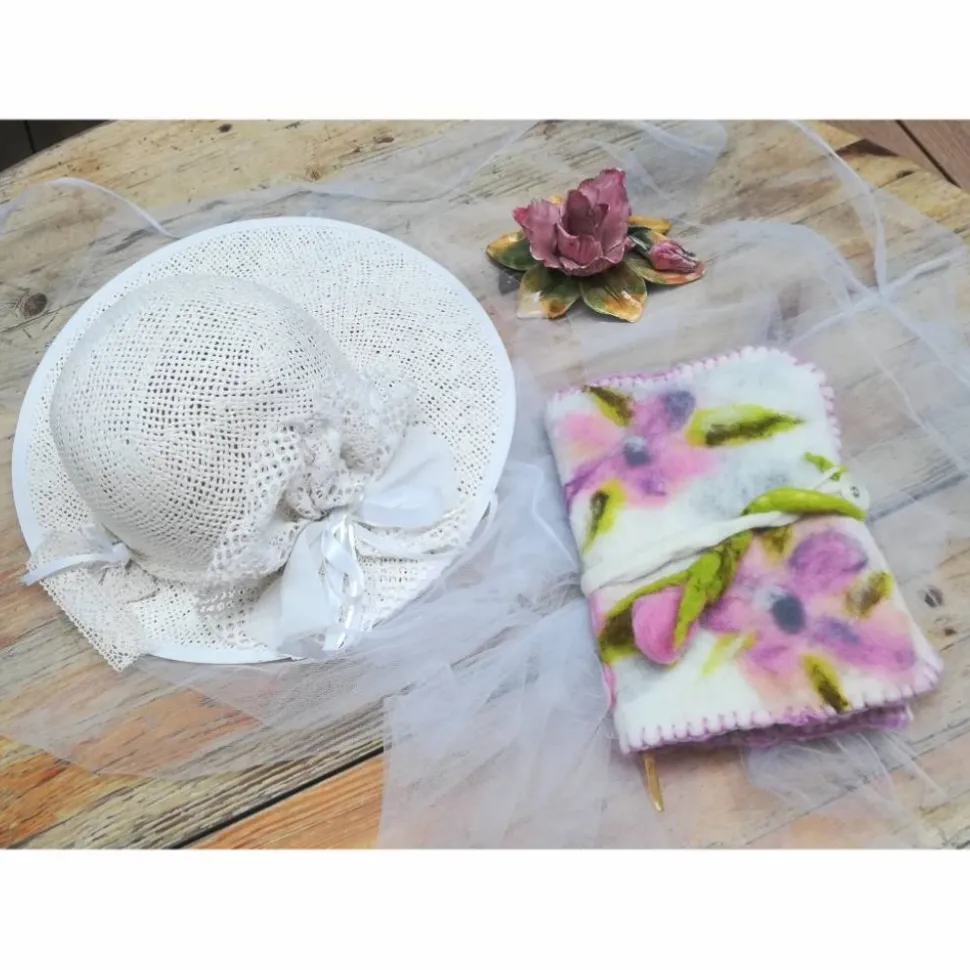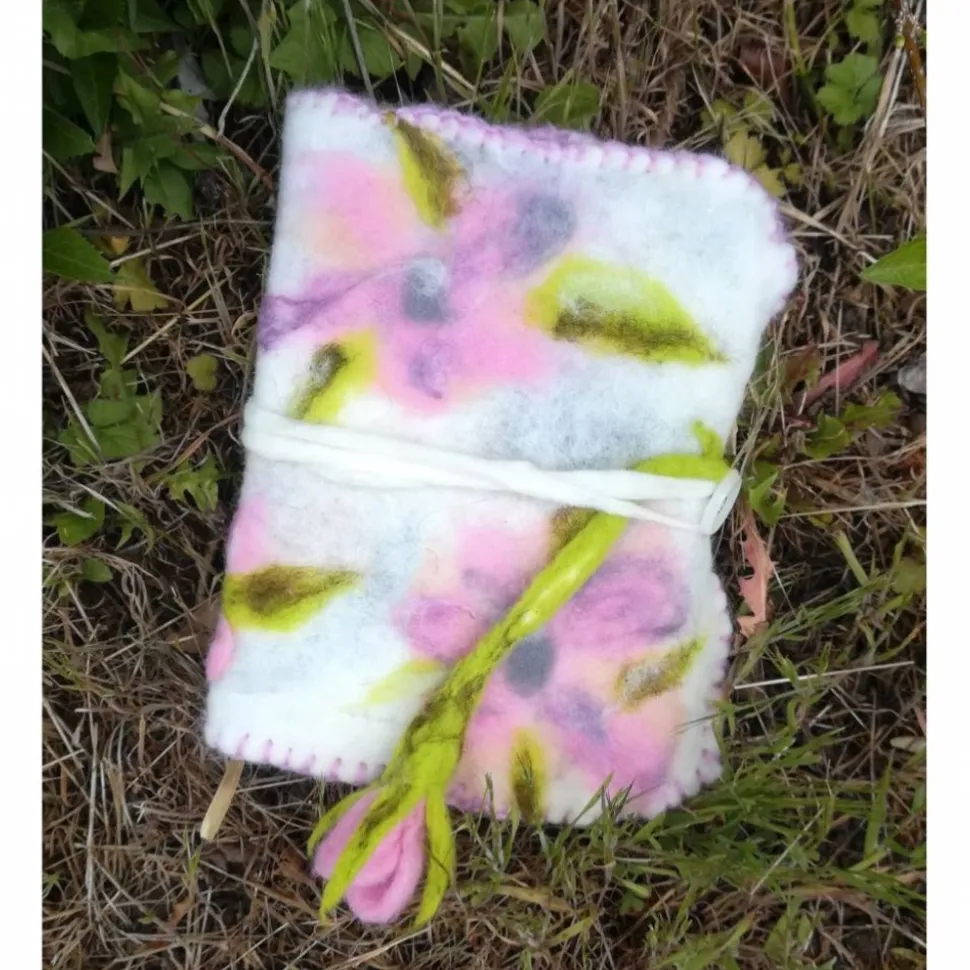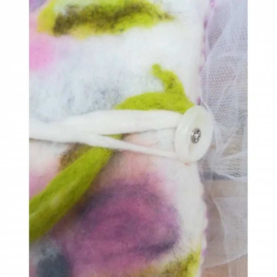 zu verschließen mit Filzkordel, die in einer angefilzten Blüte ausläuft,