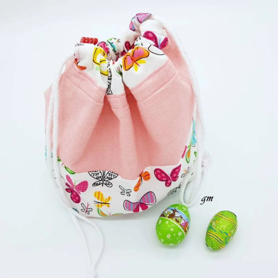 Entdecke den süßen Stoffbeutel mit Zugband in Rosa und bunten Schmetterlingen! Dieser vielseitige Beutel ist wiederverwendbar und besonders hygienisch, weil waschbar. Überrasche Deine Liebsten an Ostern, oder zum Geburtstag, indem Du den Stoffbeutel mit Leckereien füllst – eine originelle Geschenkidee!