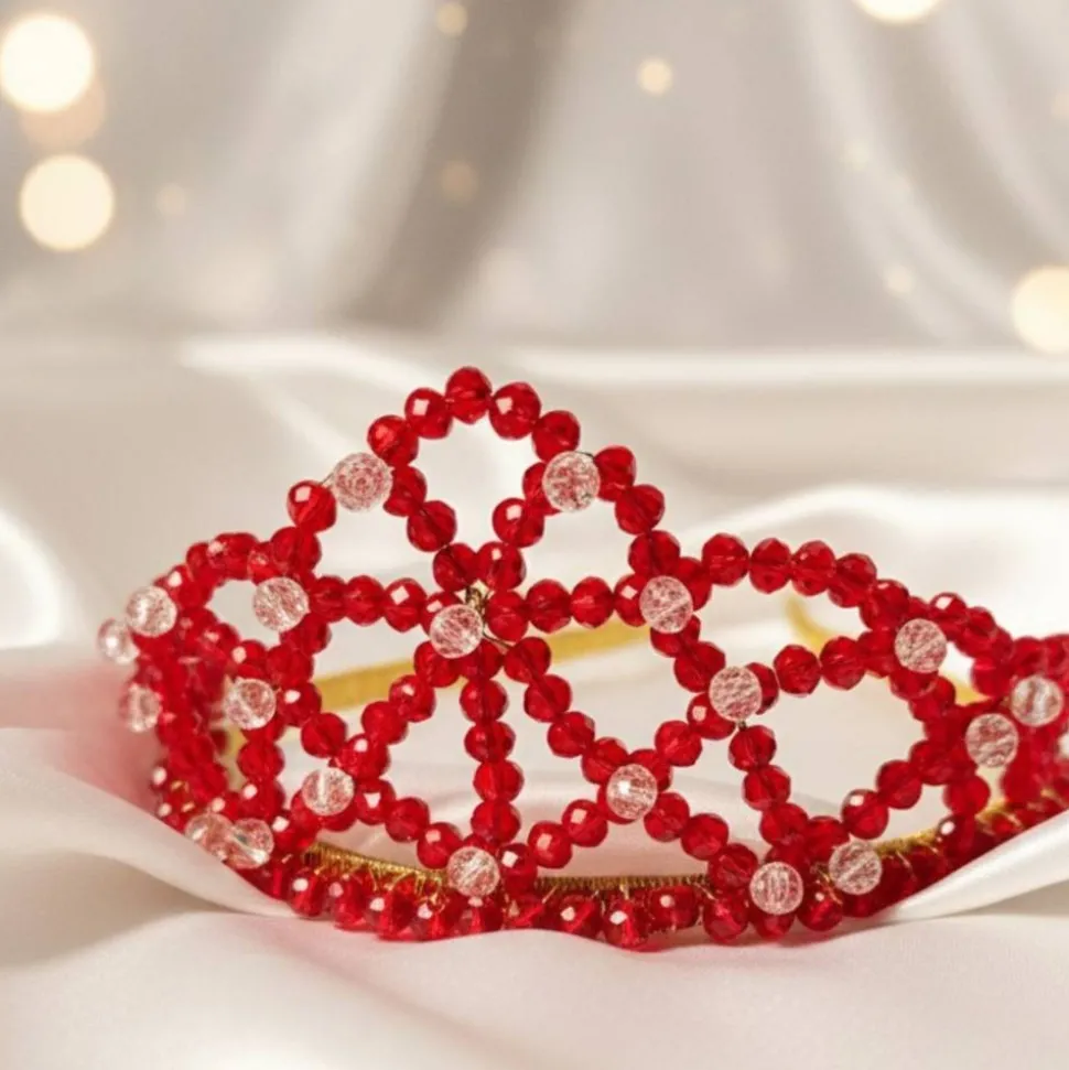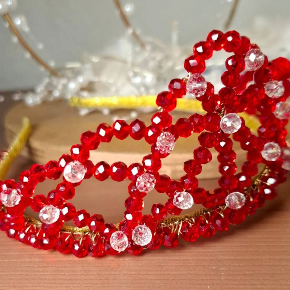 Entfalte deine innere Königin mit der handgefertigten Krone aus roten Perlen von Scent of Beauty Design. Dieses edle Diadem strahlt in intensivem Rubinrot, veredelt durch funkelnde Kristallakzente, die im Licht magisch leuchten. Jede Krone wird mit Liebe, Geduld und einem Hauch Magie gefertigt und besticht durch ihre einzigartige Qualität.
