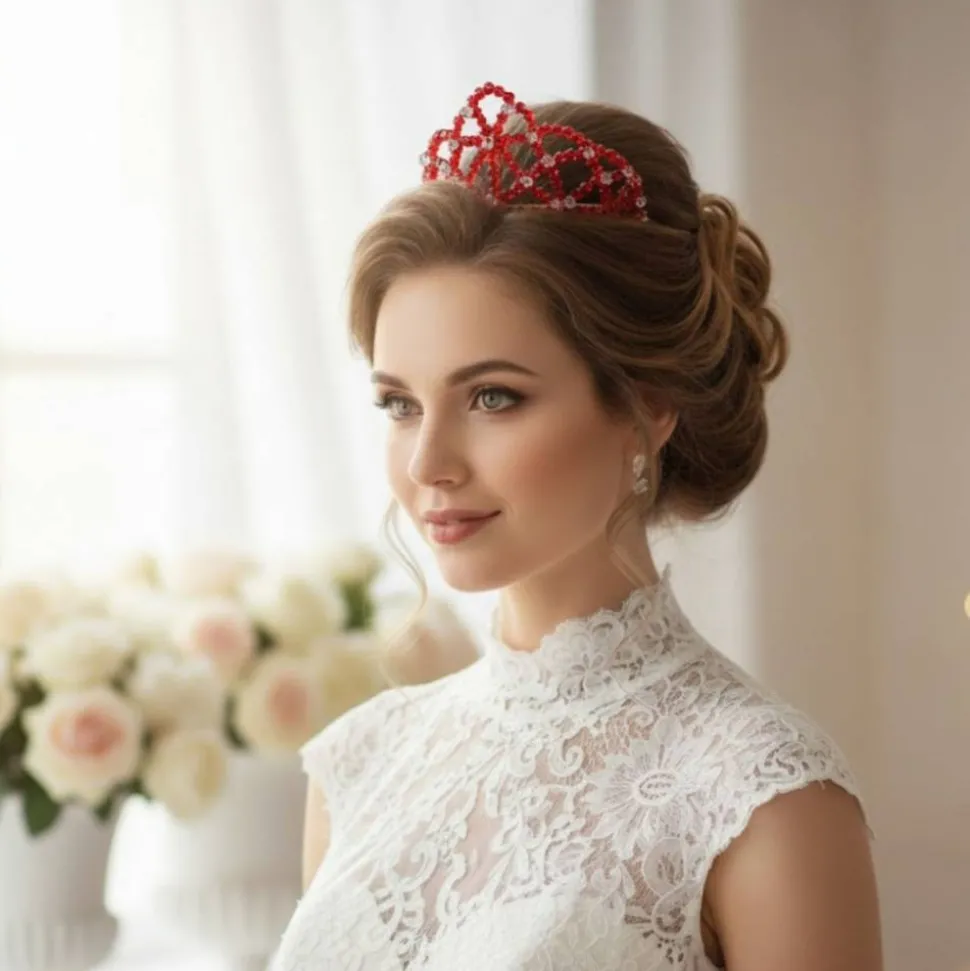 Trage diese Rote Kristallkrone zu deiner Hochzeit, beim Ball, Fotoshooting, Karneval oder Cosplay. Sie ist das perfekte Accessoire für leidenschaftliche Frauen, die ihre Selbstbewusstsein, Weiblichkeit und innere Stärke zeigen möchten.