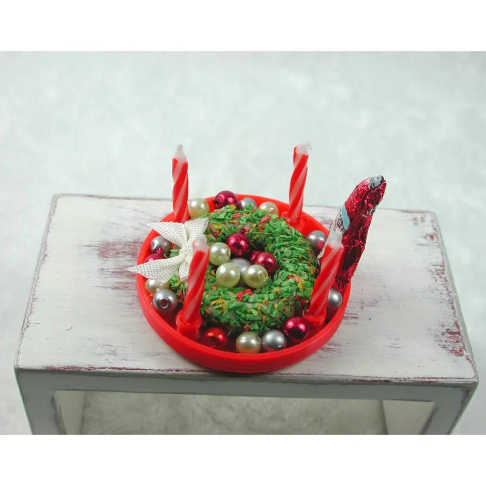 Im Teller liegt ein grüner Kranz und der Teller ist reichlich individuell dekoriert.