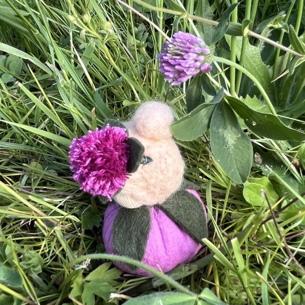 Für einen besseren Stand ist es unten geschlossen, mit etwas feinem Dekokies und der Rest mit reiner süddeutscher Merinowolle gefüllt.