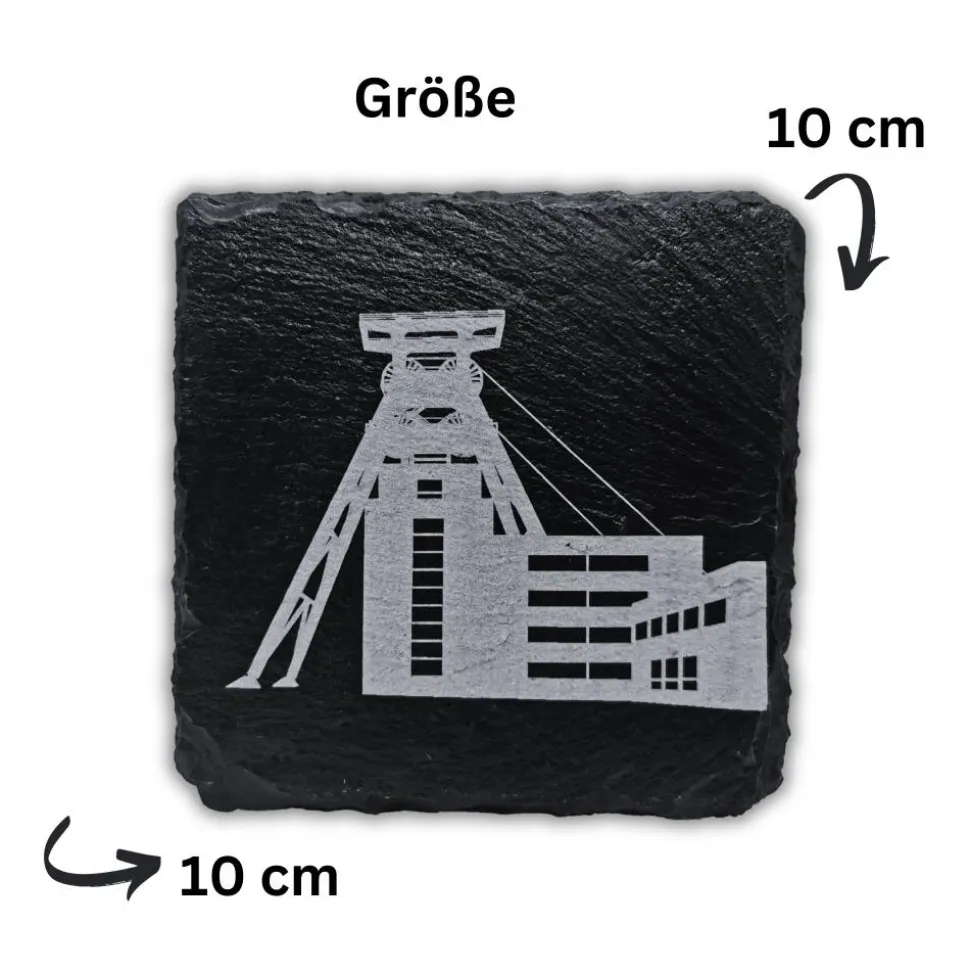 Entdecke den einzigartigen RuhrPott Untersetzer aus Schiefer – perfekt für echte Ruhrpott-Freunde! Jeder Untersetzer wird hochwertig per Lasergravur veredelt und anschließend versiegelt, damit du lange Freude daran hast. Wähle aus Motiven wie Glück Auf, Förderturm, Zollverein, Prosper Haniel oder gestalte dein ganz persönliches Design mit Wunschtext. Ideal als Geschenk für runde Geburtstage, Junggesellen- oder Mädelsabende.