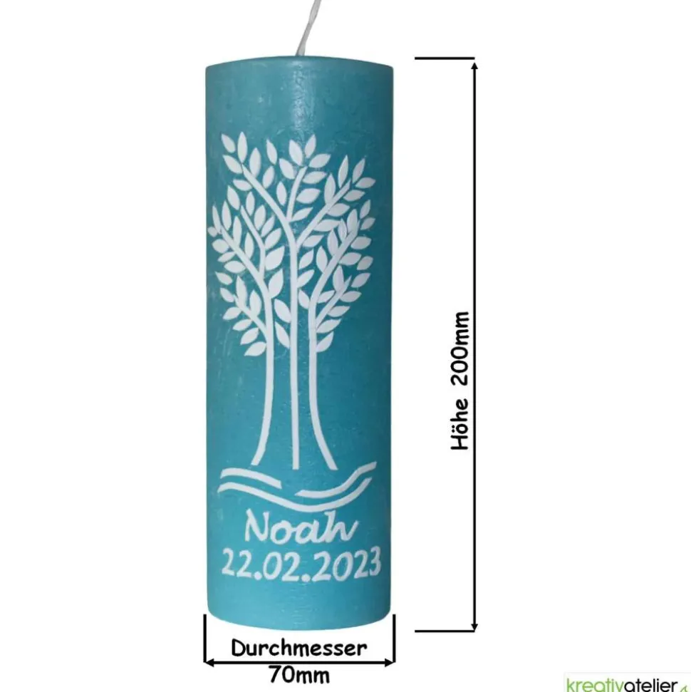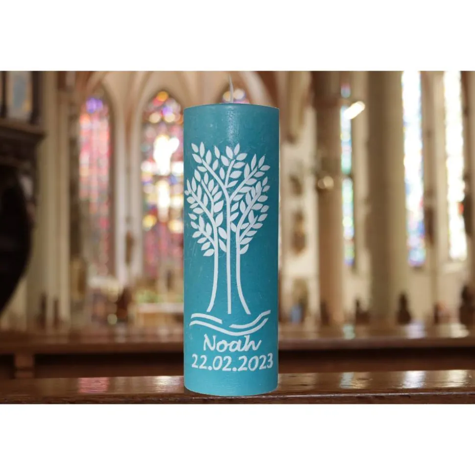 Diese rustikale Taufkerze „Noah“ in zartem Hellblau ist ein ganz besonderes Geschenk für den besonderen Anlass der Taufe. Sie zeichnet sich durch ihr einzigartiges und natürliches Aussehen aus, das sie von herkömmlichen Kerzen abhebt. Mit einer unebenen Oberfläche und einem charakteristischen rustikalen Look verleiht diese Kerze jedem Tauffest eine warme und einladende Atmosphäre.