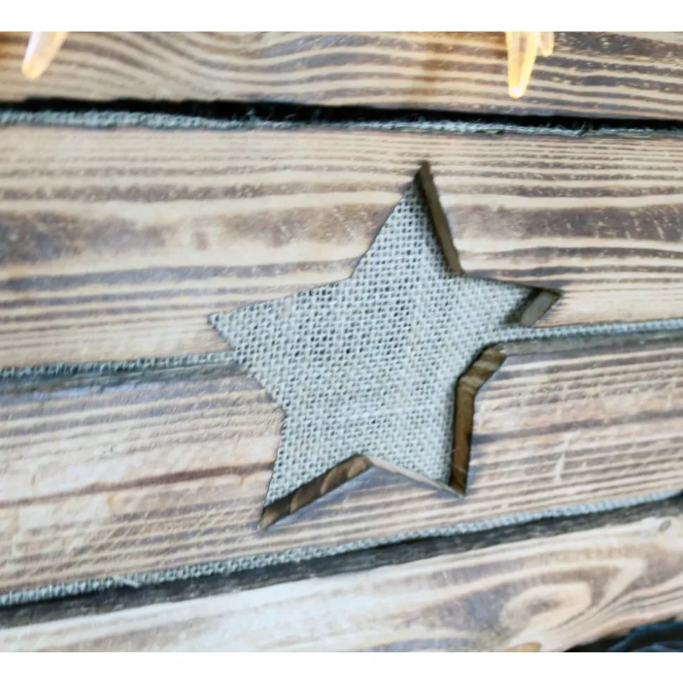 Die Holzkiste, mit ausgeschnitztem Stern, ist geflammt, so entsteht eine rustikale, ländliche und zugleich warme Ausstrahlung.