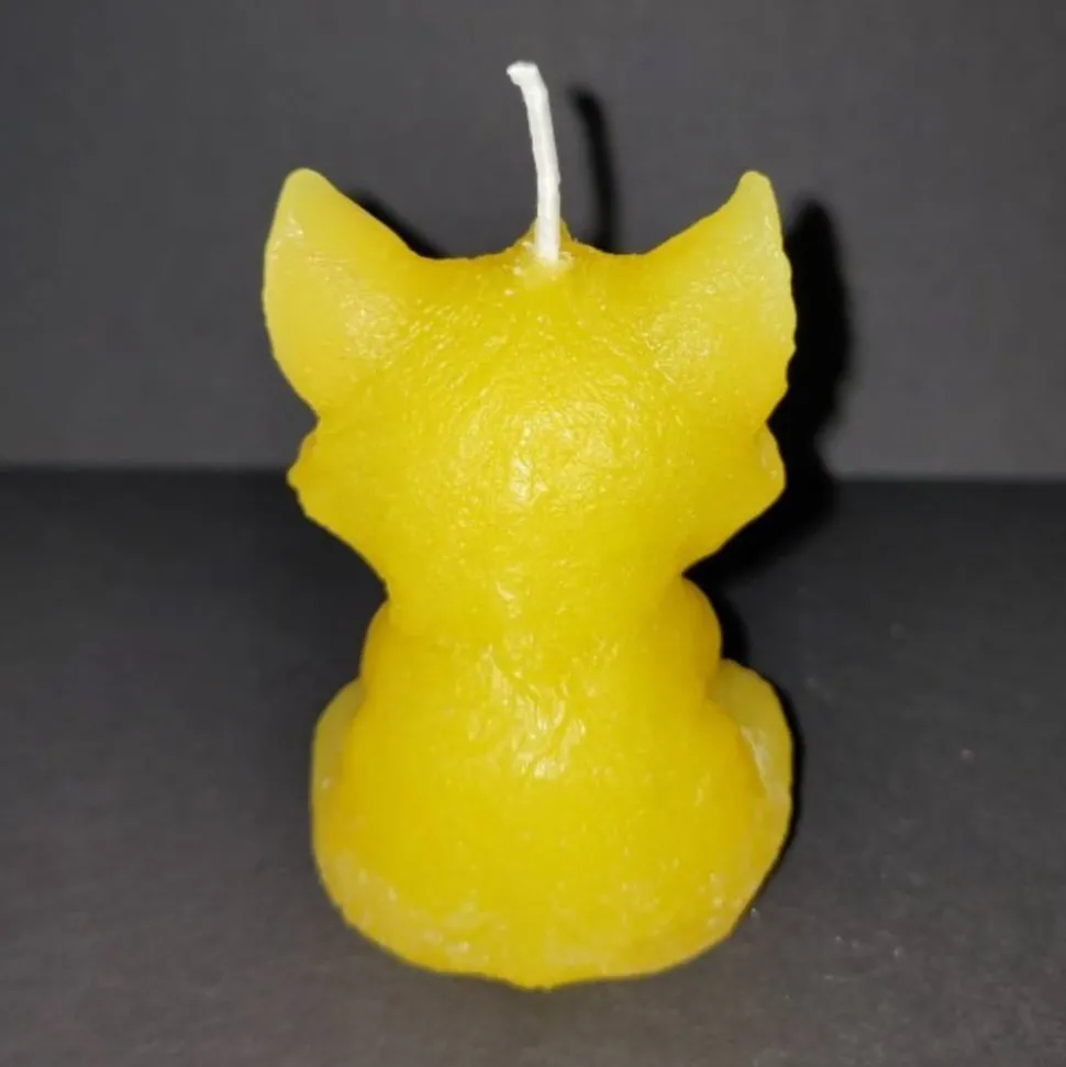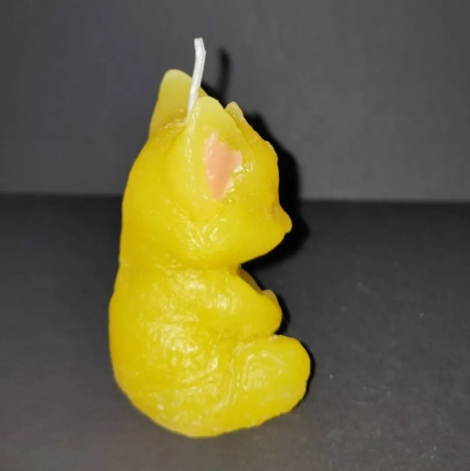 SALE -30% (Code: NEUEABENTEUER) | Handgegossene Kerze Meditationskatze – Gelb, recyceltes Wachs, Unikat