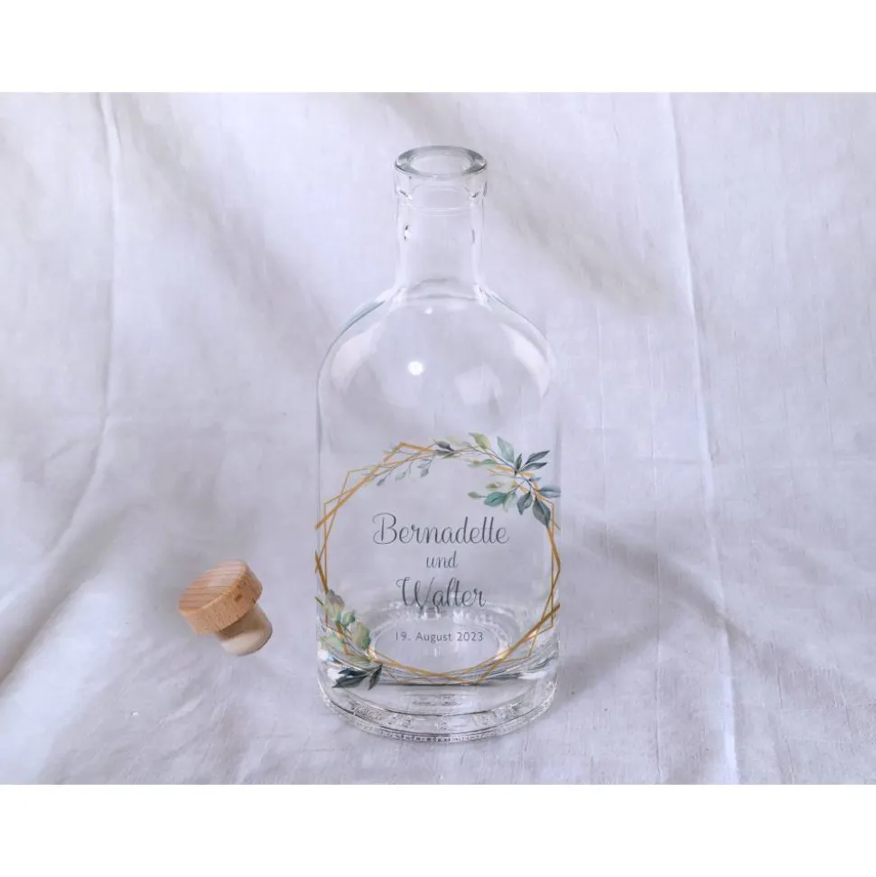 Die Flasche ist 19 cm hoch undn hat einen Durchmesser von 8,5 cm. Sie kommt mit einem Holzkopfkorken der nicht bedruckt wird.