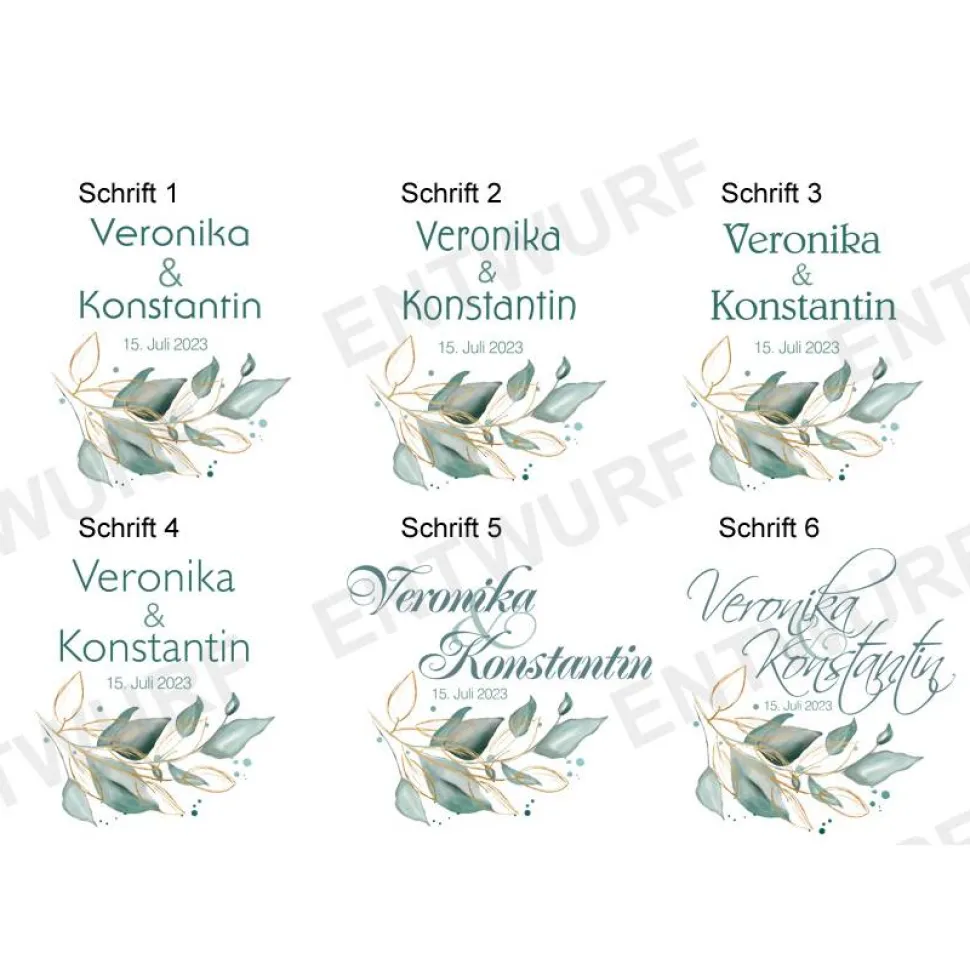 Zu Personalisieren sind Farbe, Namen, Zitat und Datum des Designs. Bitte bei der Bestellung angeben.