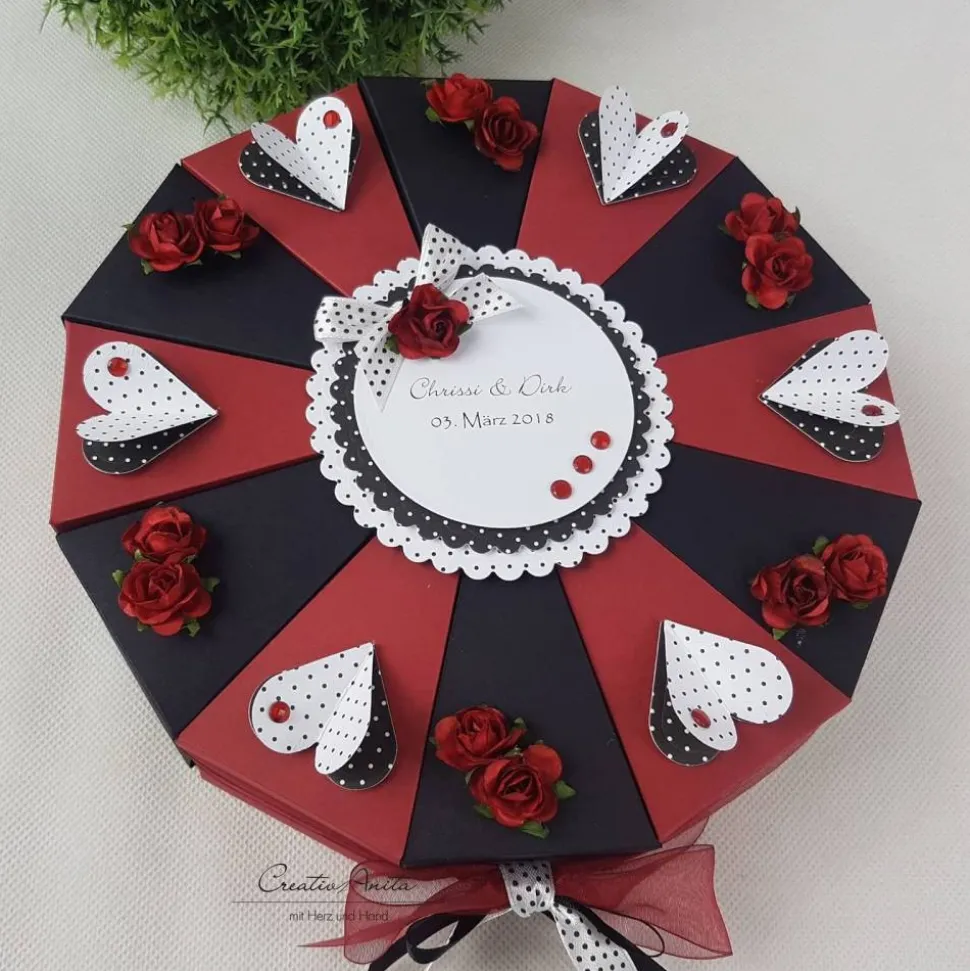 12 einzelne Tortenstücke, jedes einzeln nach Belieben befüllbar (z. B. mit Geld, Gutschein, Mini-Schafmilchseifen, Sprüchen, Süssigkeiten usw.)