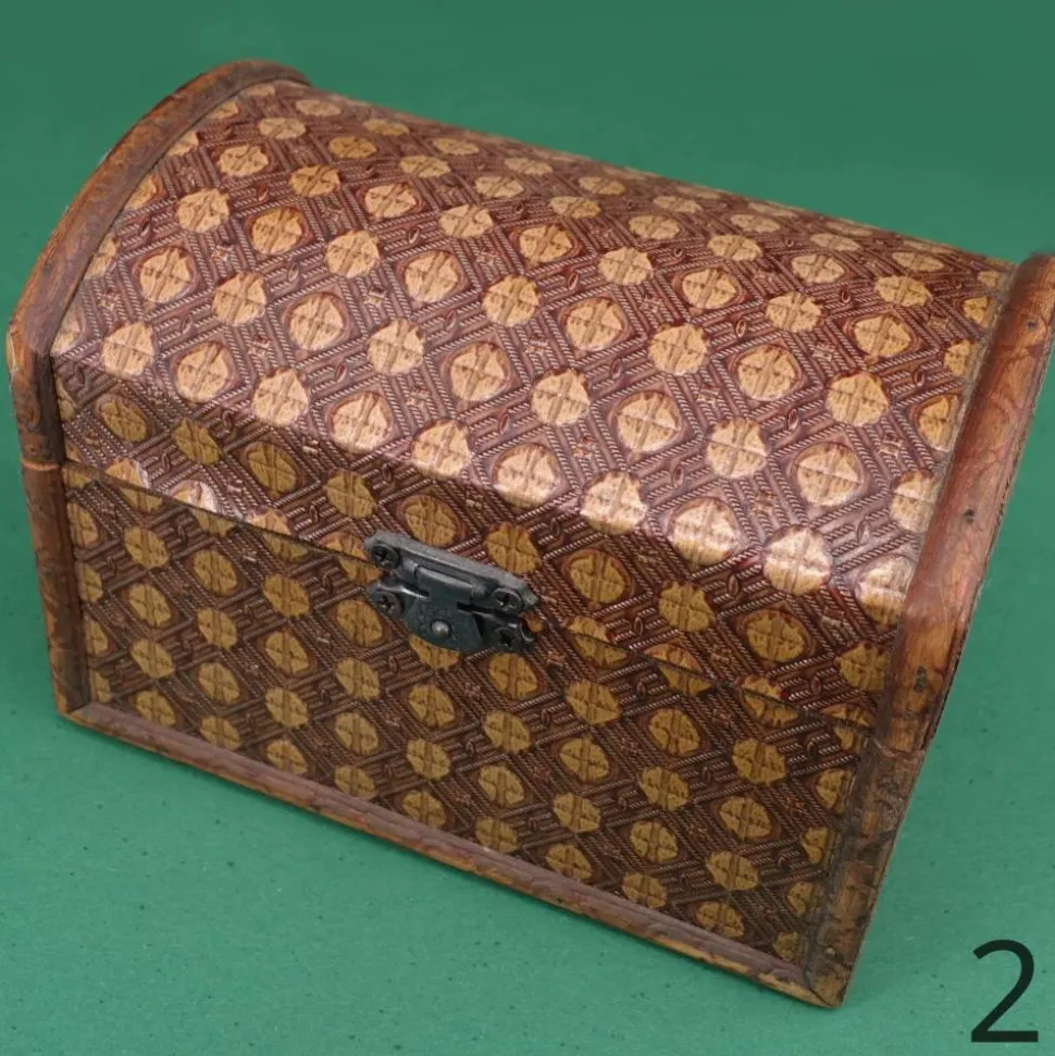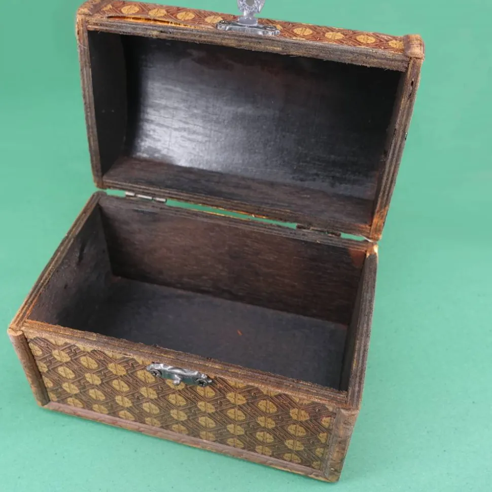 Schatztruhe, Holztruhe mit verschiedenen Mustern