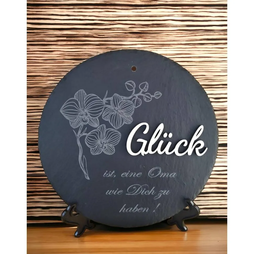 Schiefer und Holz / personalisierbare Schieferplatte mit Gravur und Holzdekor / 3D / Geschenk für Ehefrau, Tochter