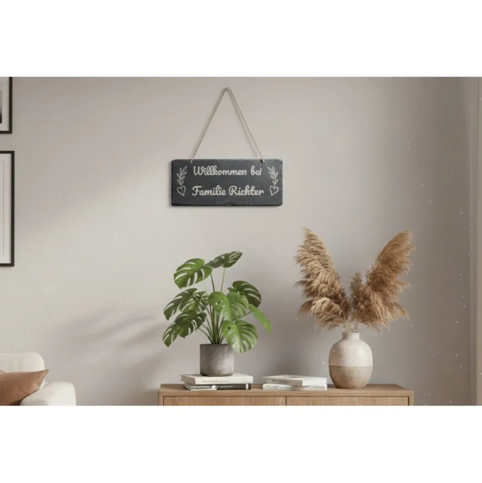 Dieses rechteckige Willkommensschild aus natürlichem Schiefer ist eine wunderschöne und stilvolle Dekoration für deine Haustür oder den Eingangsbereich.