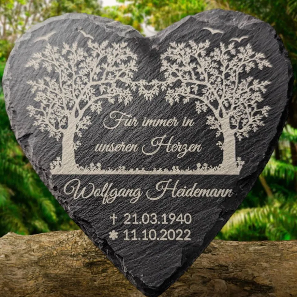 Bild und Schrift werden mittels modernsten Hochleistungs-Lasern fest im Schiefer eingebrannt. Die Grabplatte wird also nicht bedruckt oder beklebt. Die Gravur ist wetterbeständig und nutz sich auch bei dauerhafter Sonneneinstrahlung nicht ab.