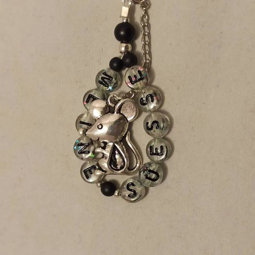 aus Acryl-Buchstabenperlen (transparent mit schwarzer Schrift, crackelt)