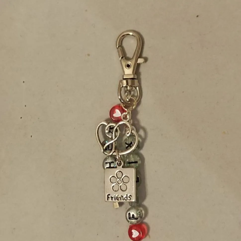 Ob Sie den Schlüsselanhänger „nur“ mit Friends/Herz-Anhänger oder ergänzt mit 2 Namensanhängern möchten, können Sie im Dropdown-Menü „Stil“ auswählen und im Feld „Personalisierung“ können Sie die zwei Wunschnamen eingeben.
