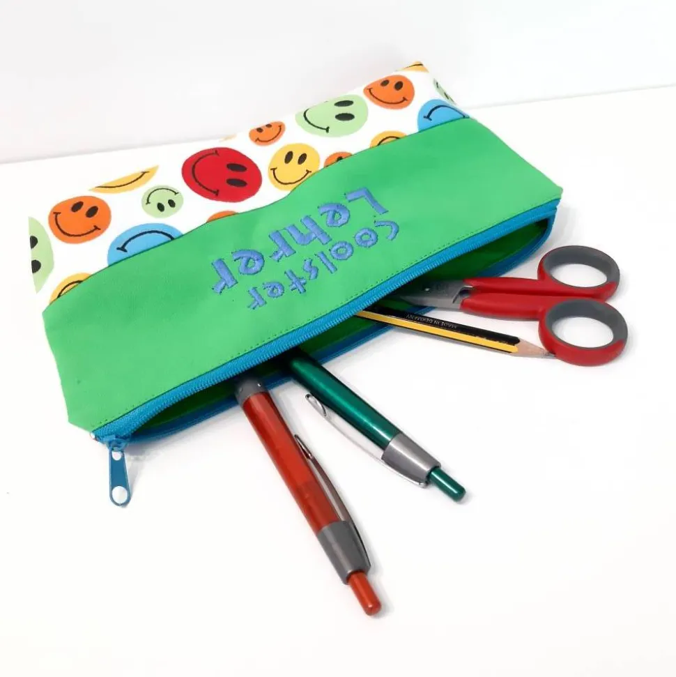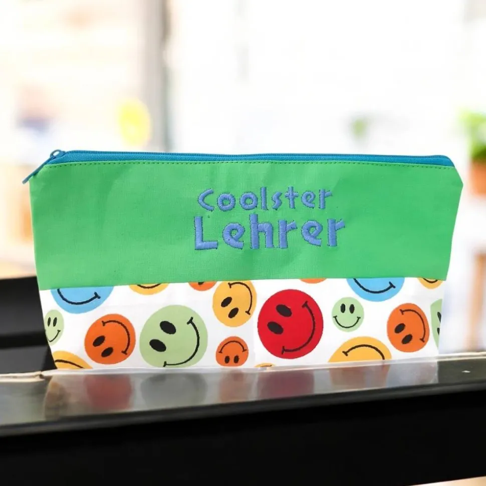 Süßes Statement Mäppchen aus Baumwolle genäht, bestickt mit den Worten: „Coolster Lehrer“. Ein tolles Abschiedsgeschenk für Lehrer, das in Erinnerung bleibt, oder als kleines Dankeschön, sowie auch passend zum Geburtstag. Das Mäppchen ist verstärkt und hat mit seinen 4cm Bodentiefe einen guten Stand.