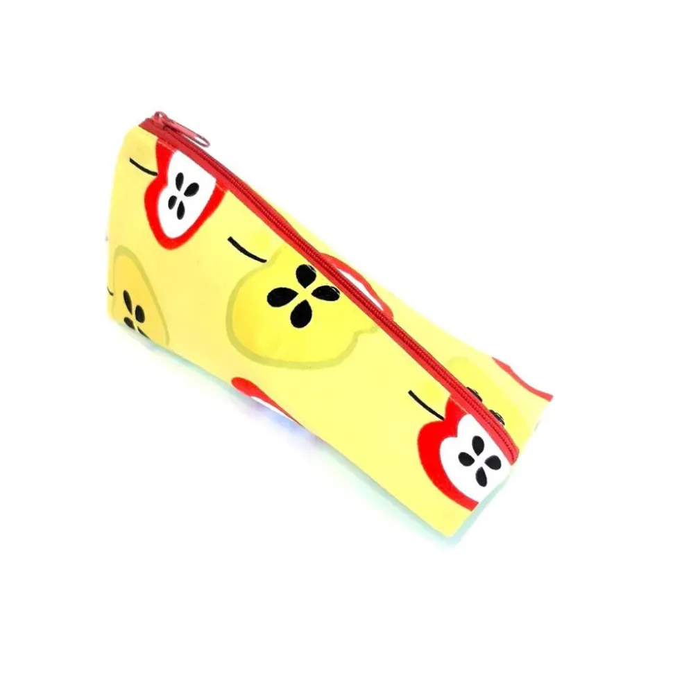 Schlampermäppchen, Federmäppchen gelb mit Äpfel, dreieckig