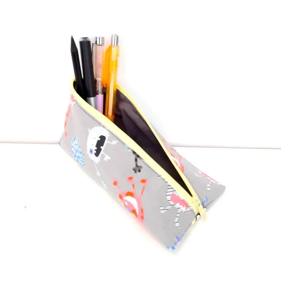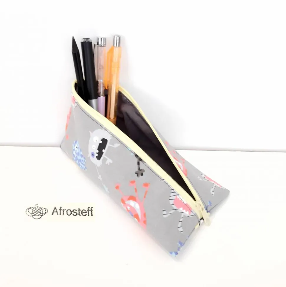 Schlampermäppchen, Federmäppchen grau mit Monster, dreieckig