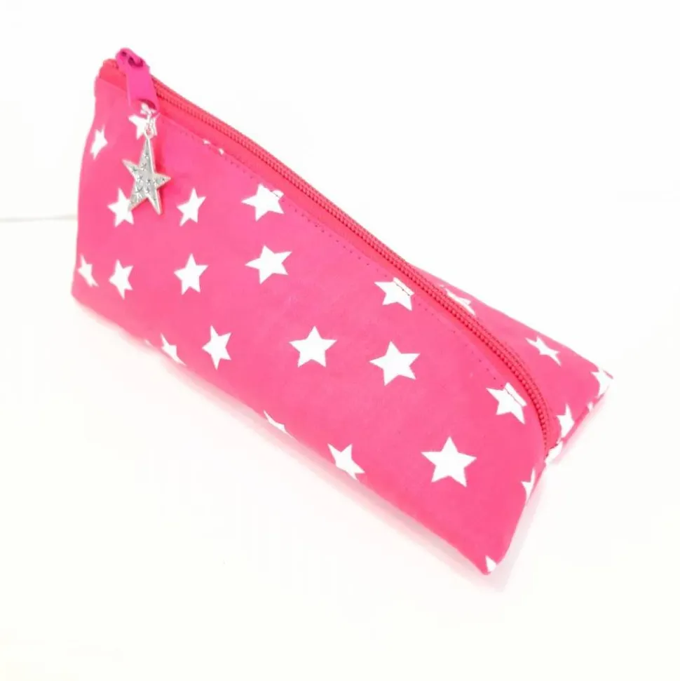 Schlampermäppchen, Federmäppchen pink mit Sterne, dreieckig