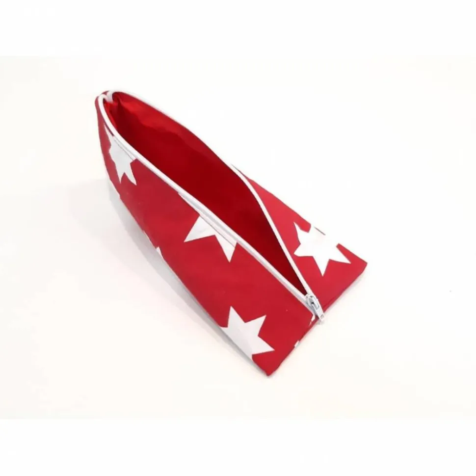 Schlampermäppchen, Federmäppchen rot mit Sterne dreieckig