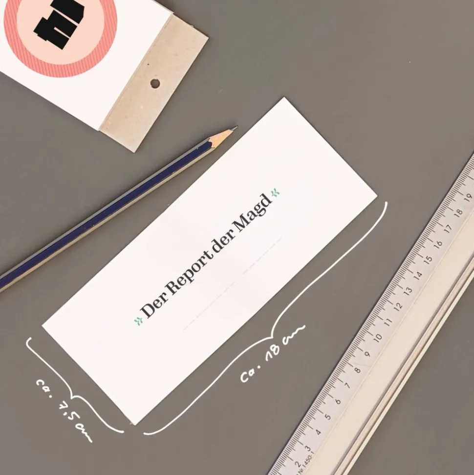ca. 7 cm breit und 11 cm hoch / 120 g Offsetpapier / oben geleimt / Rückpappe gelocht / mit deutschen Texten