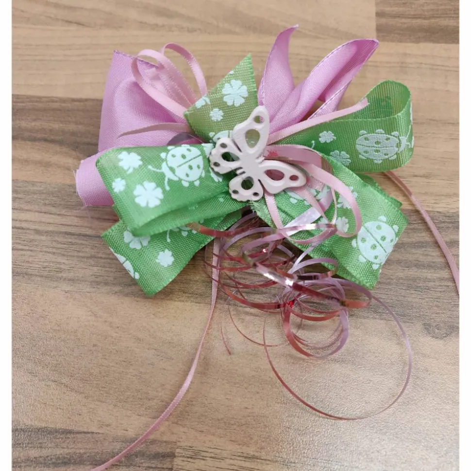 Verschiedene Schleifenbänder und Streuartikel sind hier farblich angestimmt von Hand zusammen gebunden.