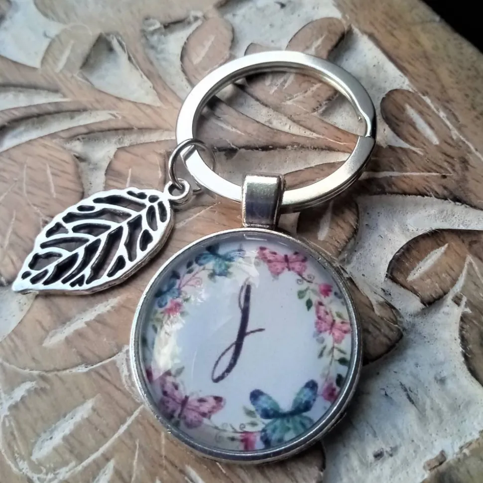 an den Anhänger ist ein 25cm großer Schlüsselring und einem kleinen Blattanhänger oder Rosenanhänger (muss aber nicht)