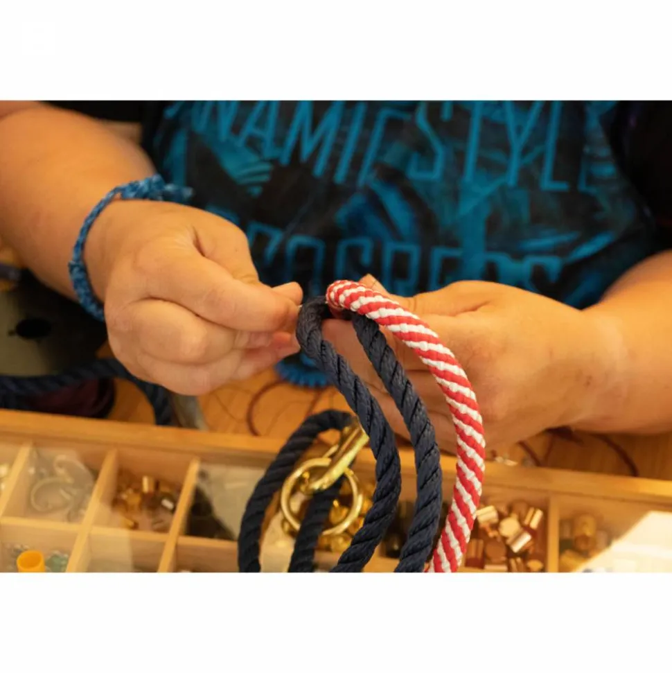 Auf Wunsch ist die passende Hundeleine und/oder das passende Halsband oder auch Handytaue, Pfeifenseile und mehr separat zu erwerben. Halsbänder gibt es in fester Länger, verstellbar mit Leder oder Biothane, sowie mit Zugstop.