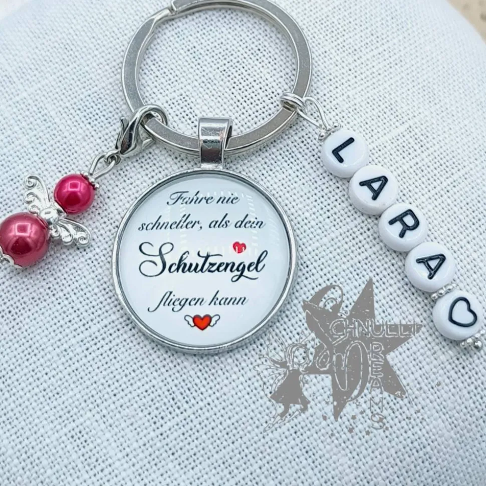 ☆ Zauberhafter personalisierter Schlüsselanhänger mit Perlenengel ☆