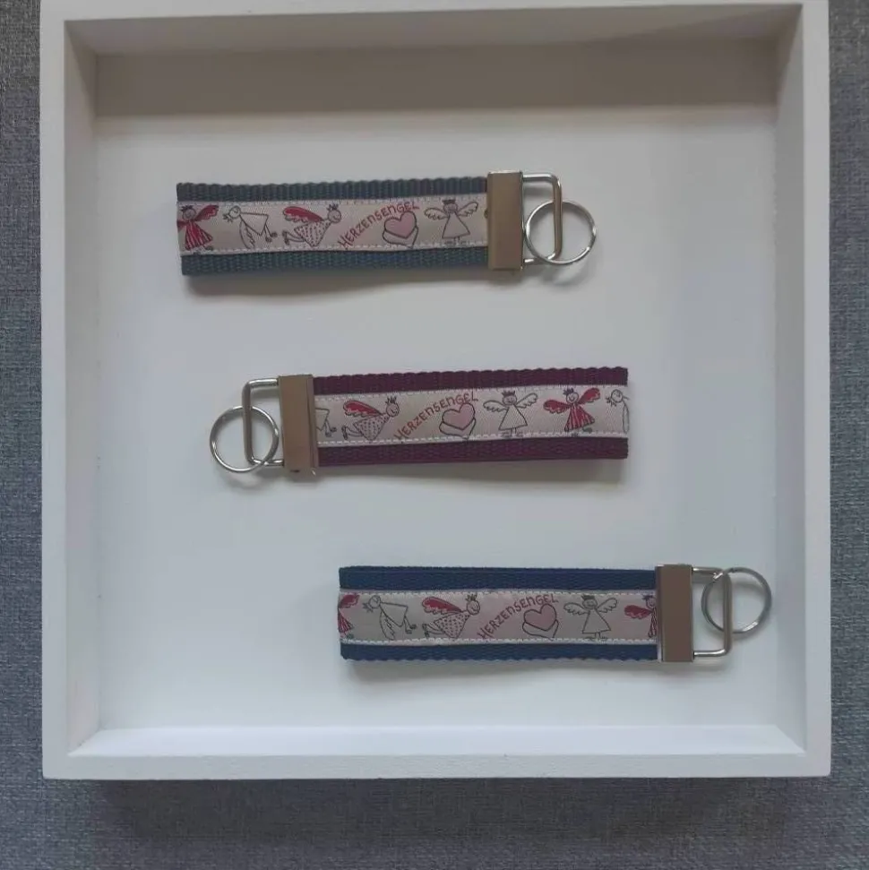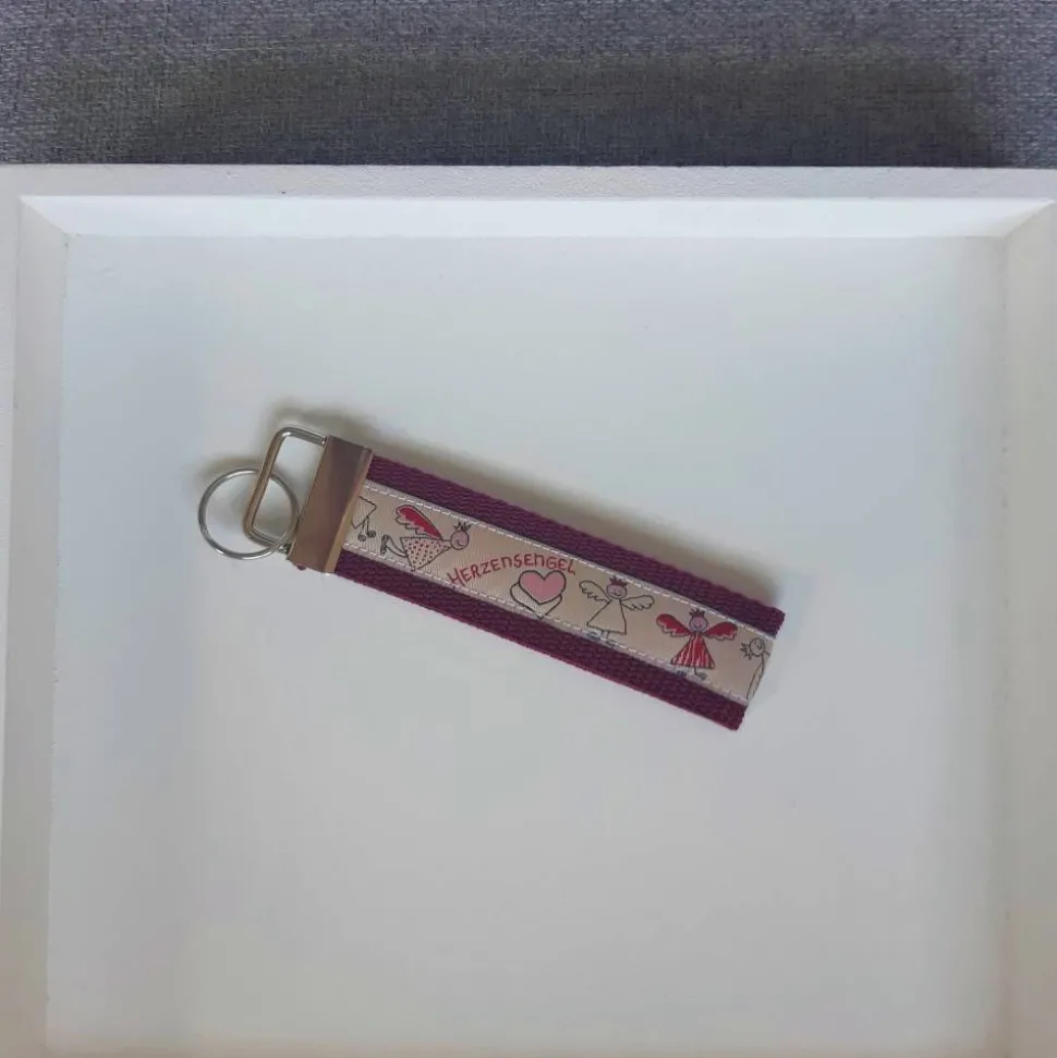 Dieser schöne Schlüsselanhänger ist liebevoll aus Gurtband und Webband von mir genäht worden.