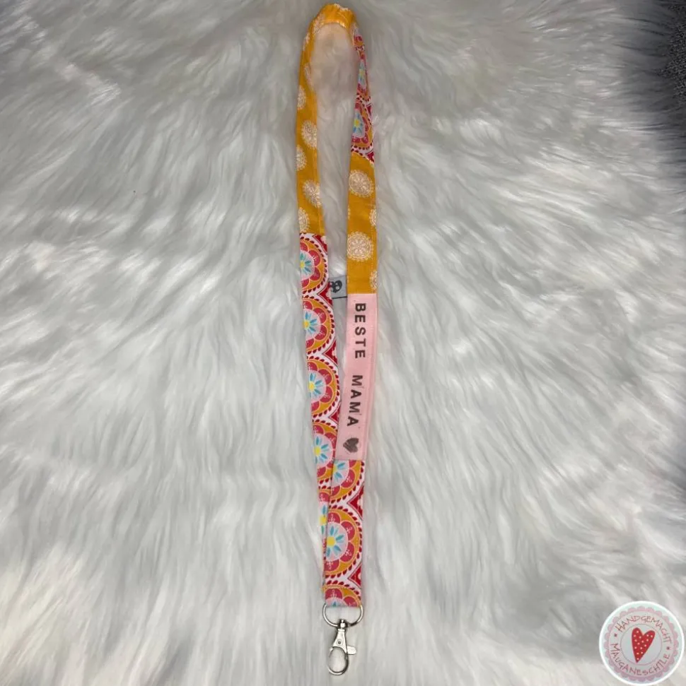 Schlüsselband, genäht aus verschiedenen Baumwollstoffen, bestempelt mit „Beste Mama“