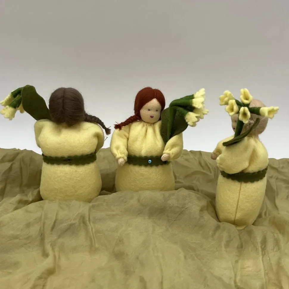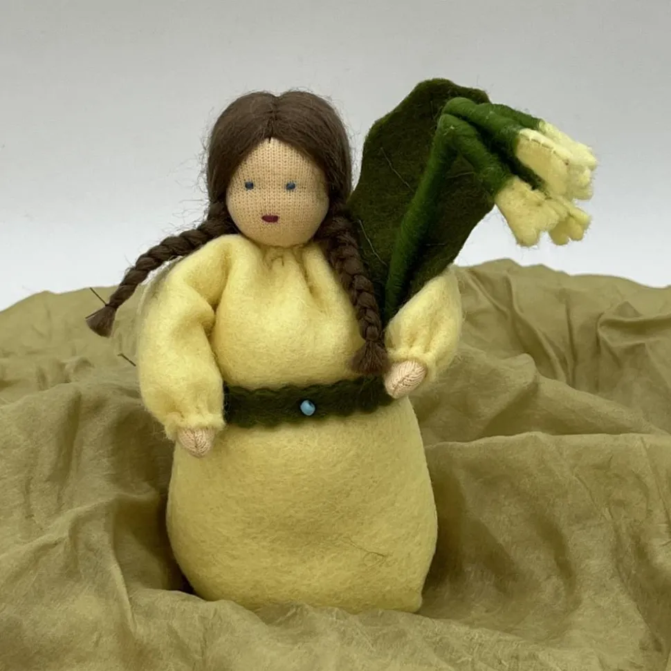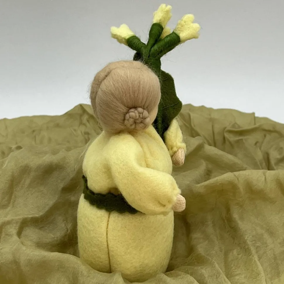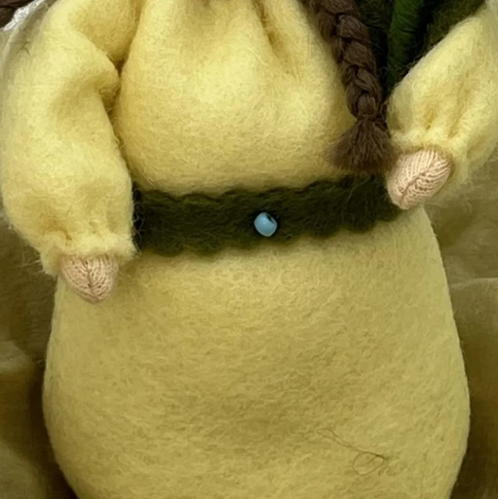 Das Püppchen ist unten geschlossen und für einen guten Stand unten mit feinem Dekokies und der Rest mit reiner Schurwolle gefüllt.