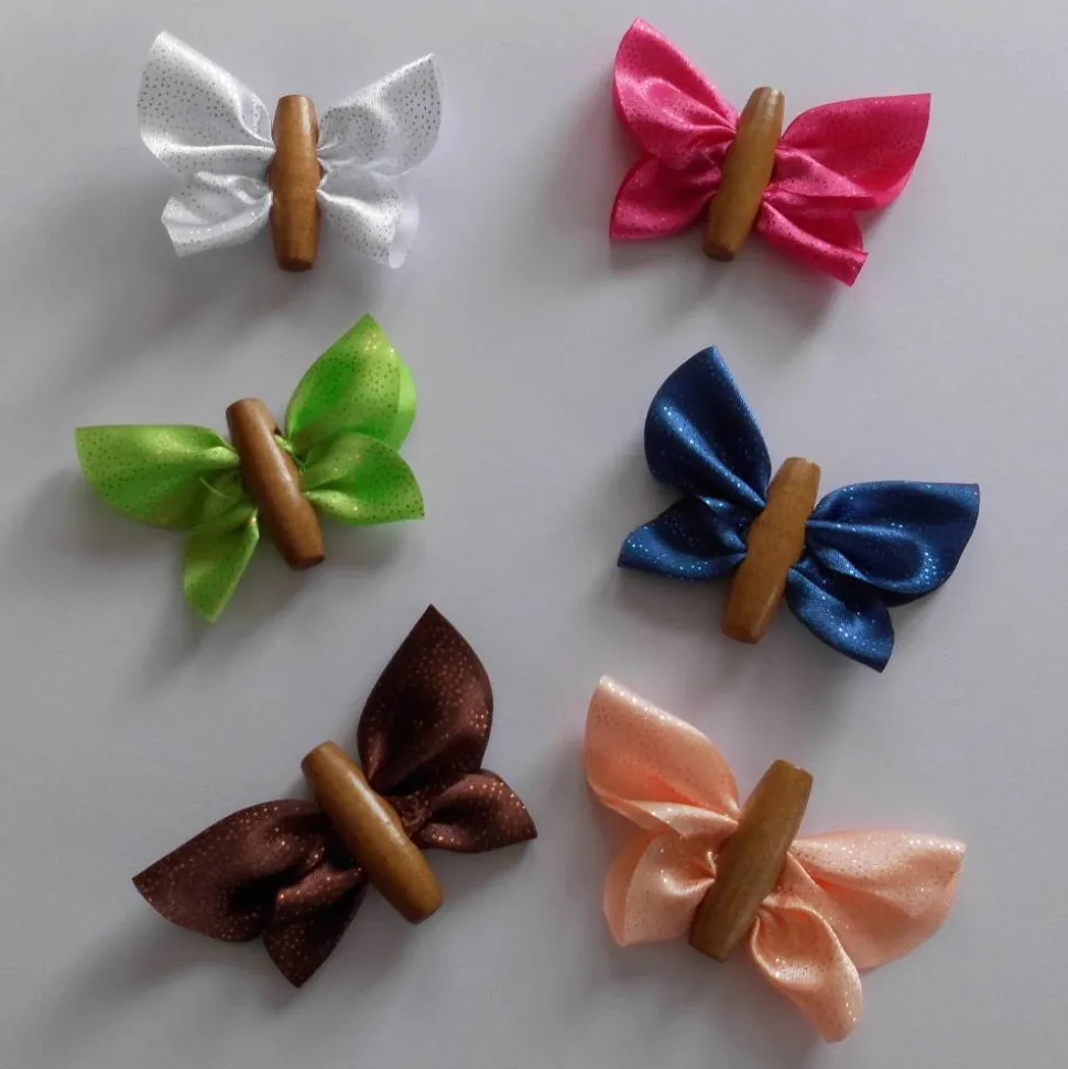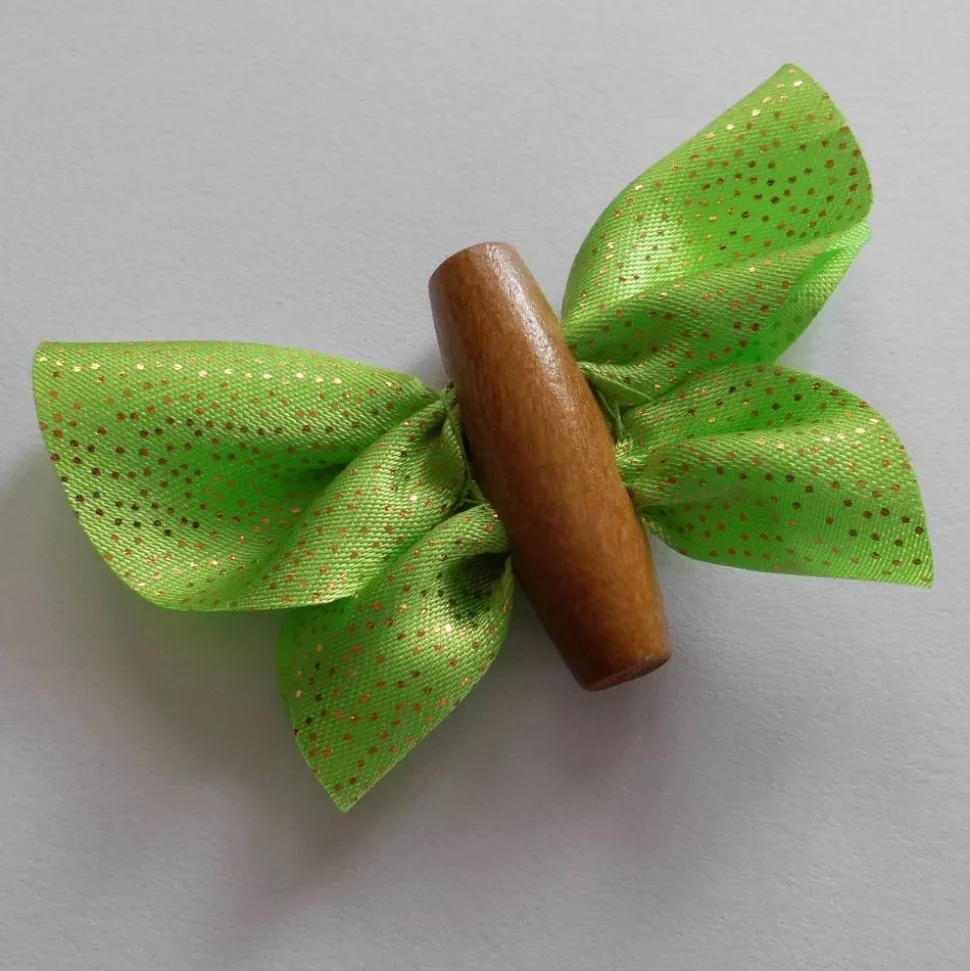 Diese Schmetterlinge dienen als Dekoration für Tisch und Tafel. Sie können diese aber auch mittels eines dünnen Fadens, den sie durch die beiden Löcher der Holzperle ziehen, ins Fenster hängen. Ich kann mir diese Schmetterlinge bestückt mit kleinen Zettelchen auch als Tischkärtchen/Namenskärtchen für eine Feier vorstellen. Aber Sie finden bestimmt noch weitere Möglichkeiten.