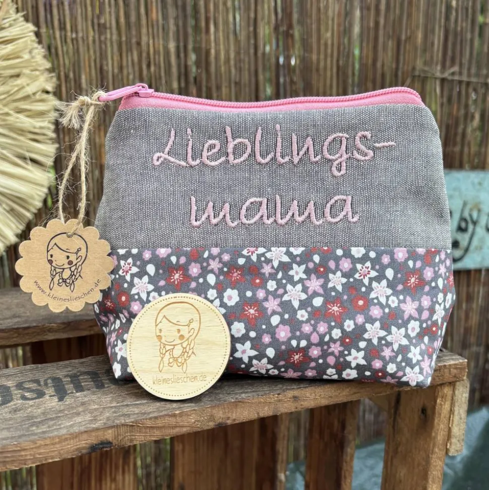 Überrasche deine Lieblingsmama mit dieser einzigartigen, handgenähten Schminktasche! Sie eignet sich perfekt als Geschenk zum Geburtstag, als liebevolles Dankeschön oder einfach, um Freude zu bereiten. Gefertigt aus hochwertigem, grauem Baumwollstoff und kombiniert mit einem rosa geblümten Baumwollstoff, ist dieses Täschchen mit dem Wort „Lieblingsmama“ bestickt und mit leichtem Volumenvlies weich gefüttert.