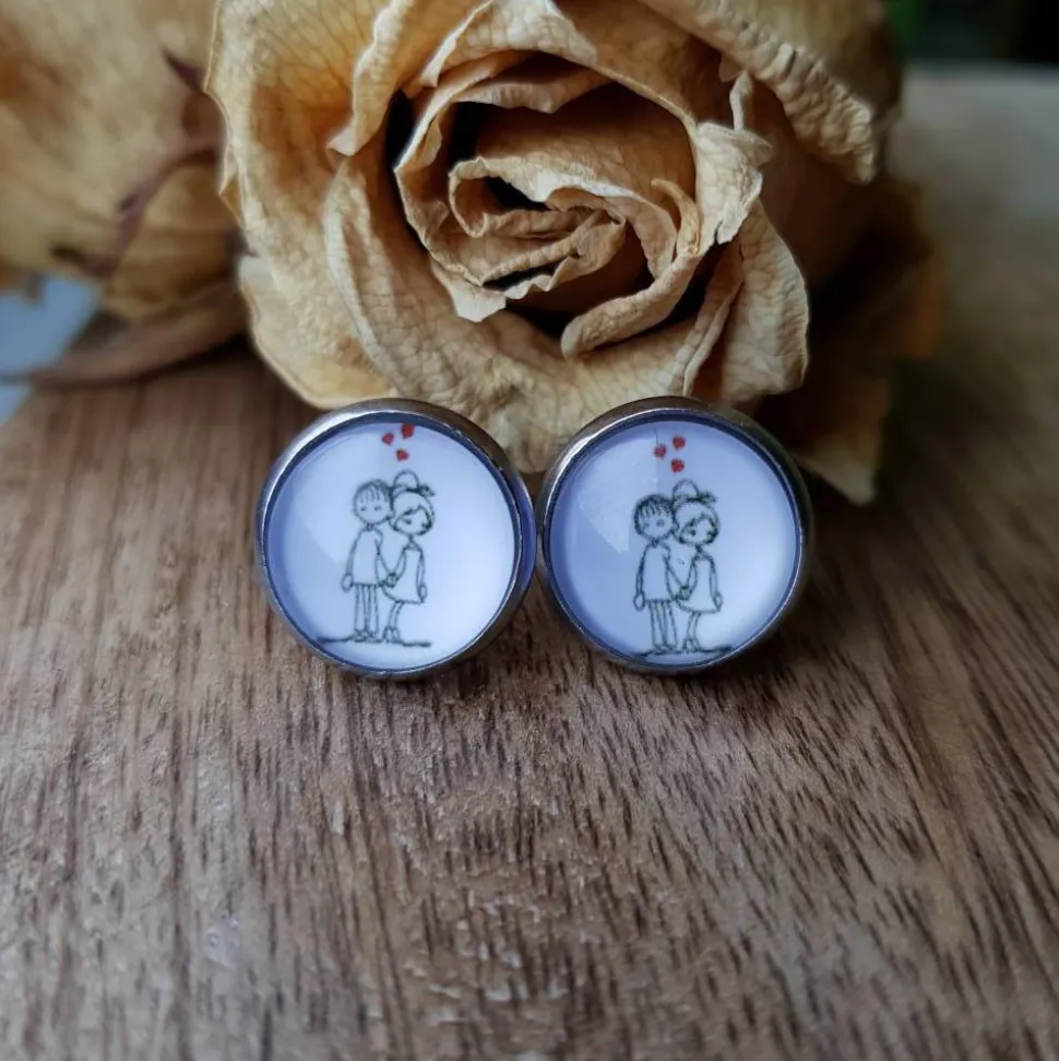 Im Detail: silberfarbene Edelstahl Stecker, bronzefarbener Schmuck ist aus Messing, silberfarbene Schmuck aus Kupfer.